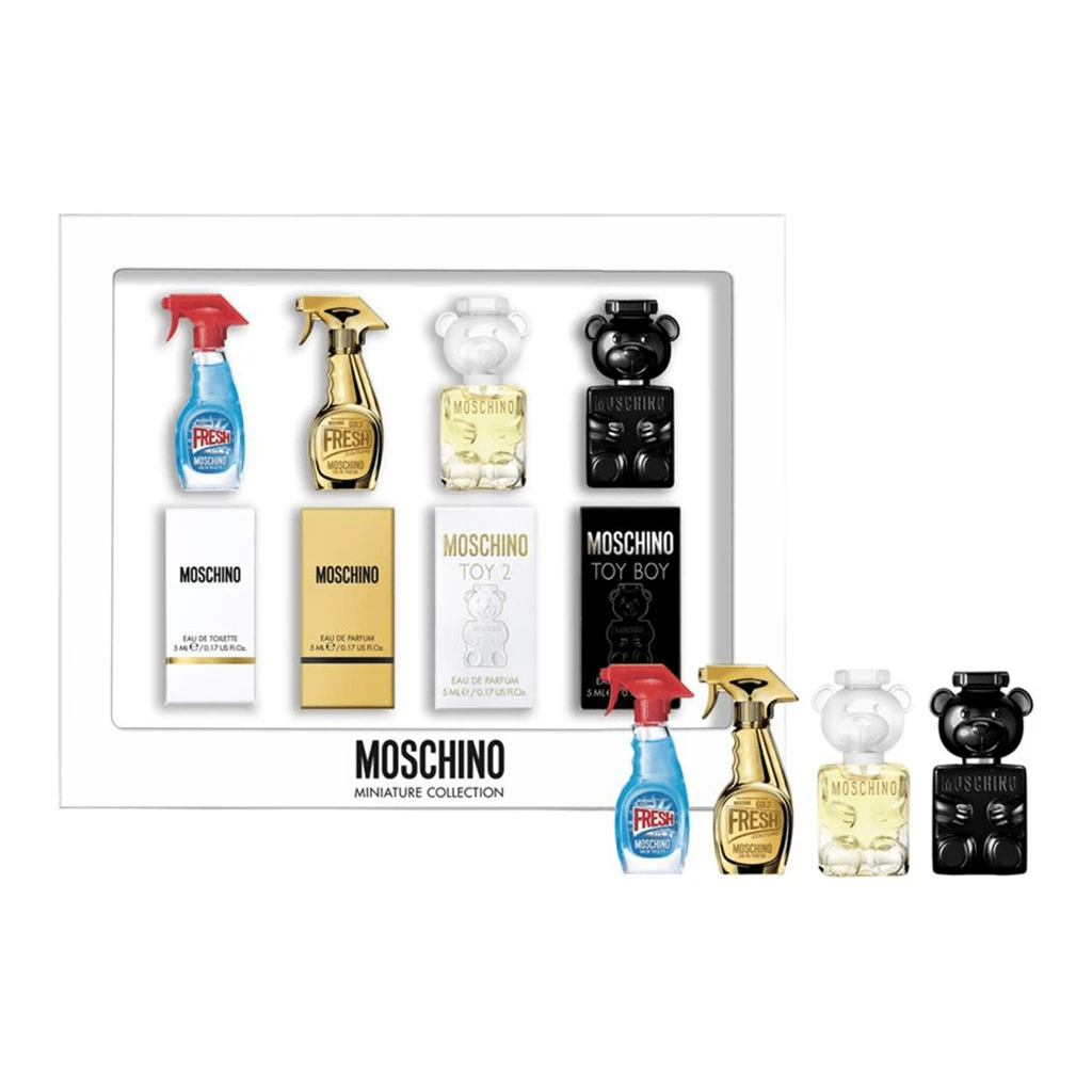 Moschino Miniature’s Gift Set comes with 4 x 5ml Splashes which are: Fresh Couture EDT + Fresh Gold EDP + Toy 2 EDP + Toy Boy EDP.