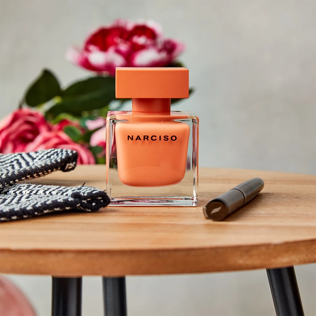 Narciso Eau de Parfum Ambrée by Narciso Rodriguez is an amber floral fragrance for women. A radiant fragrance that expresses the mysterious alchemy of attraction. The amber glow of the bottle is representational of a woman’s beauty and sensuality in her own skin. Exotic tiaré flower and ylang-ylang from Madagascar open up the fragrance, as the musky amber scent creates a smooth and sleek feel. Rich vanilla dominates the base. For a woman who knows who she is, unapologetically.